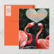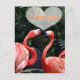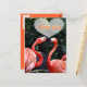 Två vackra flamingor, ser ut som om de ska kyssa eller krama med ord I Kärlek Du i centrum av ett hjärta ovanför dem.