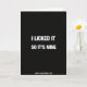This Valentine’s Day card delivers a cheeky message with strong contrast and confidence. Centered on a deep black background, the phrase “I LICKED IT SO IT’S MINE” appears in large white lettering that instantly grabs attention. The bold text is easy to read and leaves no doubt about the joke. Beneath it, “HAPPY VALENTINE’S DAY” is written in a smaller font, adding balance and grounding the design. The black-and-white color pairing keeps the focus on the words while giving the card a sharp, modern feel. This card is perfect for couples who enjoy humor, confidence, and a little possessive teasing when sharing Valentine’s Day love.