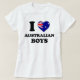 Ik houd van Australische jongens. I heart Australian boys. Met zwarte letters en het hart is met de Australische vlag. Als je gek bent op jongens die uit Australië komen.