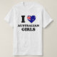 Ik houd van Australische meisjes. I heart Australian girls. Met zwarte letters en het hart is met de Australische vlag. Als je gek bent op meiden die uit Australië komen.