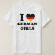 Ik houd van Duitse meisjes. I heart German girls. Met zwarte letters en het hart is met de Duitse vlag. Als je gek bent op meiden die uit Duitsland komen.