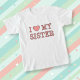 I love my sister t-shirt for kids. The design features a pink heart and cute pink letters. Great way for your kid to show love for their sister.
