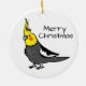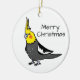 A cute cartoon drawing of a normal grey cockatiel bird with a yellow face. It's shown here on a custom Christmas ornament. You can move the pet bird around and change the "Merry Christmas" to any text you prefer. Select from more ornament shapes and sizes. Add any color background if you like. This ornament make a fun little gift for any cockatiel lover!