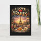 A romantic, richly illustrated Parisian scene celebrating love, cuisine, and iconic landmarks beneath a glowing sunset sky.