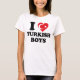 Ik houd van Turkse jongens. I heart Turkish boys. Met zwarte letters en het hart is met de Turkse vlag. Als je gek bent op jongens die uit Turkije komen.