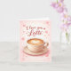Let them know you love them with this punny Valentine's card featuring an illustration of a coffee mug with a heart swirled in the foam and the phrase I Love You a Latte centered above, created by digital artist Jayne Wilson.