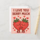 This “I Love You Berry Much” postcard features a charming food pun that’s perfect for Valentine’s Day, anniversaries, or just because. Whether you’re sending a quick note or gifting a smile, this cute design is a delightful way to say “I love you.”
