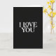 This greeting card has a deep black background with no extra images or borders. In the center, it says “I LOVE YOU” in white serif letters that look classic and easy to read. The words are large and evenly spaced, so your eyes go straight to the message. The strong contrast between the white text and the black background makes the message feel serious, steady, and heartfelt. Up close, the white letters have a faint texture that adds a gentle, human touch instead of looking flat. With nothing else on the card, the focus stays on love and the meaning behind those three words ❤️💌. It’s a great choice for a partner, close friend, or anyone you want to remind how much they matter, and it pairs nicely with a sweet treat like 🍫.