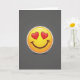 This cheerful card centers on the familiar heart-eyes emoji, shown large and bright against a deep gray background. The face glows in warm yellow tones with a smooth, glossy look that catches the light. Its red heart-shaped eyes and wide smile instantly express happiness, affection, and admiration. A soft shadow beneath the face adds depth, making it appear slightly lifted from the background. A crisp white outline clearly defines the shape and gives the design a bold, polished finish. The contrast between the bright emoji and the dark backdrop makes the expression stand out even more. This card delivers a clear message of love and joy, making it a fun and heartfelt choice for Valentine’s Day or anytime you want to share affection. ❤️