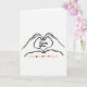 This card shows two hands outlined in black with a soft gray shading, meeting in the middle to form a heart shape on a white background. The hands look gentle and steady, like they’re carefully holding that heart together. Inside the heart shape, the words “love you” appear in a simple cursive handwriting style, placed right at the center. Under the hands, there’s a thin red broken line that stretches across, with three small solid red hearts sitting along it. That touch of red draws your eye and adds a warm, romantic feeling ❤️. The overall design is quiet and direct, which makes the message feel honest and easy to give. It’s a meaningful card for a partner, close friend, or anyone you want to remind that you care 🥰. Hope it helps you share Valentine’s Day sentiments.