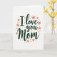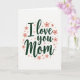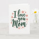 This card features the words “I love you Mom” in dark emerald green lettering, centered on a bright white background. The text sits inside a soft circular layout, with the “I” leading into the rest of the message in smooth, connected strokes. A faint shadow under the letters gives the words a gentle lifted look without feeling heavy. Around the message, small five‑petaled flowers in muted coral or dusty rose pink are scattered like little accents. Tiny dots are sprinkled between the flowers, adding a light, sweet detail around the circle. The overall look feels calm and caring, making it a meaningful way to show appreciation and affection for your mom 🥰. It’s a simple message that says a lot, and it’s easy to give with love on Valentine’s Day ❤️—a friendly way to share Valentine’s Day feelings.