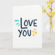 This card features the big message “I LOVE YOU” in a loose, brush-style lettering that looks like dark navy ink. The words sit centered on a wide white background, with “I” above and “LOVE YOU” taking up most of the space. To the left of the word “LOVE,” three short teal dashes point outward like little sparks, adding a burst of energy. On the lower right, just under “YOU,” five golden-yellow dots of different sizes float like confetti. The simple mix of navy, teal, and yellow on white keeps your eyes on the message and makes it feel direct and honest ❤️. It’s a meaningful card to give because it says what you feel without overexplaining, whether it’s for a partner or someone you care about 🥰. Share it to help express your Valentine’s Day feelings in a warm, straightforward way.