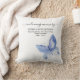 Betala en hyllning till en älskad med denna enkla blå fjärilskudde som kan vara personlig med namn och ett budskap. Du kan lägga till ett uppskattat foto på motsatt sida.