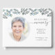 Vacker vattenfärgssage och blåfärgad grönt eucalyptus greenery-minnesgäst bok med ett foto till minne av din älskade. Titlas IN LOVING MINORY i modern handskriven manustypografi och personlig med namn och data. PHOTO TIP: För snabbaste/bästa resultat väljer du ett foto med subjekt i mitten och/eller före skörd till en rektangulär form för lodrät FÖRE uppladdning och användor fliken ÄNDRING bredvid exempelfotot i avsnittet PERSONALIZE. Kontakta designern via Zazzle-Chattan eller makeitaboutyoustore@gmail.com om du vill att designen ska ändras.