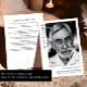 En redigerbar mall för begravningsprogram för ett firande i livet med ett stort täckfoto under en fetstilt rubrik "In Loving Memory", med utrymme för den älskade personens namn och data. I detta utskrivbara begravningsprogram ingår en klart organiserad serviceordning på baksidan. Denna enkla och elegant tryckta eller nedladdningsbara begravningsprogrammall är idealisk för minnestjänster och är enkel att anpassa och ger en meningsfull struktur för att hedra en älskad persons liv. Perfekt till dem som söker ett redigerbart begravningsprogram med en ren serviceplan och ett starkt visuellt erkännande. Finns som tryckta kort eller en snabb digital nedladdning.