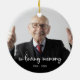 Ät din kära med en anpassningsbar fotominnesprydnad. Denna unika minnesstund är perfektens gåva till dig själv, familj eller vänner för att betala hyllning till din älskade. Vi hoppas att ert minnesmärke kommer att ge er fred, glädje och lycklig minnen. Citat " i överljudsminnet. " Anpassa med favoritfotona och namn. Ornament är dubbla, du kan göra 2 favoritfoton, en på vardera sidan. Anpassa namn på framsidan och data på baksidan. Se "Anpassa den här mallen" för att ändra foto och namn. En Firande av livet . COPYRIGHT © 2020 Judy Burrows, Black Hund Art - Med alla Höger reserverade