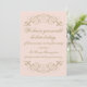 Dekorativa snurrar och flourerar ram den här elegantens vintage inspirerade bröllop-tecken/kort. Systemet för rosa och guld färg.