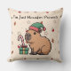 This “I’m Just Here for the Presents” decorative pillow features an adorable capybara holding a gift, perfect for cozy Christmas décor.