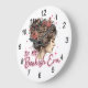 En charmerande illustration som visar en kvinna med hår i en bun och blommor i hennes hår. Inuti hennes huvud ser vi en lång bokfodral fullt av bokar. Det finns en kvinna som klättrar på en stege för att nå bokar. Den färgstarka texten lyder: "I min bokade era". Den här utformningen är tillgänglig för en mängd olika produkter.