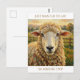A cute postcard to keep in touch with someone and say hi and I miss you, with a cute ewe pun with an adorable impasto style sheep on an old rustic farm looking at you.