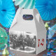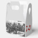 Grått gable-stil-affisch med en bild av en Big Band-orkester på framsidan och titeln på en av Glenn Millers underbarare nyanser, "In the Mood." på röd musik pub på baksidan. Båda sidor har två röda musik noter. Se matchningsinbjudan, kuvert, stor presentpåse, etikett, datumdekal, vinylklistermärken med anpassningsbar och papper förpackning. Visa hela Patriotic 40s Favorbox-samlingen i SPECIELLA TUUCHES | Avsnittet Party favors.