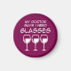 Funny wine pun: “My doctor says I need glasses.” Three wine glasses deliver clever wine humor. Perfect for wine lovers and party nights. Celebrate with witty, adult humor.