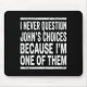 I Never Question Johns Choices Because Im One Of Them