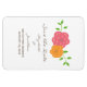 Snyggt och modern In Bloom-Blommigt Spara Date Premium Flexi Magnet med en illustration med ett vackert par blommor i rött och orange som fylls av en mängd vibrerande vinstockar av grönt. I elegant är spara datum magneter perfekt för att tillkännage ett vår eller sommar-bröllop. Enkel att anpassa, lägg bara till din bröllop-information i den text fält tillhandahåller. Klicka på Anpassa om du vill söka efter fler anpassningsalternativ.
