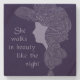 Design citerar Lord Byrons berömd dikt: "Hon går i skönhet, som natten."