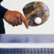 I stadens centrum Chicago horisont på skymningen Pingisracket