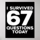 I Survived 67 Questions Today Funny Teacher Six Se Poster