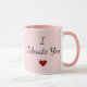 Start every morning with a smile (or a playful eye-roll!) with this “I Tolerate You ♥” mug. Featuring elegant script text in black with a red heart on pink background, this mug is perfect for couples with a cheeky sense of humor.