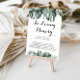 Detta tropiska grönska vita blommiga minnestecken är perfekt för ett rustikt bröllop eller brudvisning. Designen har gröna palmblad buketter med vita älskliga blommor.
