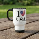 Visa kärlek för Förenade Stater även när du är på språng med den här bekväma resemuggen "I ❤️ USA". Med en sjudande utformning av den amerikanska flagga som formas till ett hjärta är mugg en perfekt för att hålla dryckerna varma eller kall under pendlingar, roadtrips eller dagliga ärenden. Det är ett fantastiskt sätt att visning din patriotism, fira nationella helgdagar eller gåva till en amerikan som alltid är på gång.