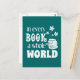 Detta mönster lyder "I varje Bok i hela världen" och åtföljs av en hög av bokar med blommor som växer från det. Det är en vacker perfekt för människor som kärlek att förlora sig i bra bok. Ett vykort av hög bra är också ett underbart sätt att informera människor om nya evenemang i bok, klubbar i bok och nystarter i bok.