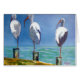 Tre ibis, var och en på ett ben, verkar vara på vakt när de skannar vatten. Från en oljemålning av South Florida Artist Betty Laur. www.bettylaur.com