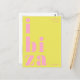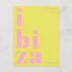 Skicka en snyggt hälsning från Balearerna med detta moderna typografiska vykort från Ibiza, España. Utformningen har ord Ibiza uppdelat på tre linjer i fet, dekorativ gemener brev, i rosa med en sjudande grönt av gult. Ovanför står att slaktfrasen (hälsning från) är skriven i ett slimmat, tunt sans serif-teckensnitt, med ett nyttigt, modernt tryck. Perfekt som semesterkeepy, dekorativ accent eller att skicka hem från din öflyktsort. En minimalistisk men ändå öga-fångstdesign för älskare av contemporary-estetik och resememementon.