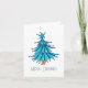 Kortet har en originalillustration av en vit isblått Julgran. "God jul"-meddelande under. Tom på insidan.