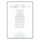 Bordsnummer/sittkort med elegant-kalligrafi. Detaljerad isig blå snöflingdesign. Anpassa med bordsnumret i mörk navy calligraphy och gäst namn i ett elegant serif-teckensnitt. Designad för att matcha vår isblå snöflingasöksamling.