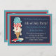 Roligt och patriotisk fjärde juli-inbjudan som är färg röd, vit och blå. Den här inbjudan har en glasskon med tre skopor i färg och design av en amerikansk flagga. Poängen har stars och stripes och är perfekt för den här helgdag eller minnesdagen.