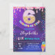 Söt och färglös sex roligt födelsedagsfest inbjudan-skor till flicka. Detta är vibrerande med lila och rosa med glass nummer 6 med många sprinkler.