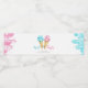 Vid visuell gender visas party vattenflaska-etikett med vattenfärgstryck som illustrerar rosa och blåa iskräm på våffelkoner. I texten står det "vad kommer baby XX att bli?"