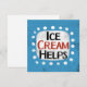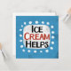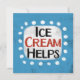 "Ice Cream Helps" är en roligt som är utformad med en vit accentform omgiven av vita, vita, vita, vita, texturerade punkter.