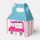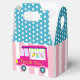 Ice Cream Lastbil-partyt med tealblått prick och rosa rand grund. Denna förmånslåda är så söt och underbar för användan för så många olika tillfällen. Du kan enkelt redigera texten till kostym om händelsen.