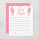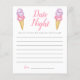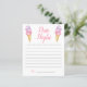 Temat möhippa för vismisk glass/möhippans nattavrådskort med vattenfärg som illustrerar glassens skop för rosa och lila på en våffelkon. Be gästerna fylla i det här kortet under duschen. Det kommer att bli en underbar keepy! Perfekt till en sommardusch.