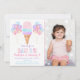 Den här söta inbjudan innehåller en glasskon och ballonger i pastellregnbåge färg med faux guld foil konetti.