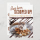 Den här designen har en roligt som fördubblats i sidled inbjudningskort för möhippan. På framsidan finns en gräddskop med chokladdroppar på en våg med chokladdrizzelbakgrund. Baksidan innehåller all malltext för firande. Anpassa texten i fälten mall, ta bort text eller redigera med verktyg och markera det teckensnitt som du vill använda stil, storlekt och färg.