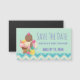 Spara datumkortet Magnetiskt. Illustrerad med en skål glass med 3 giftiga skopor täckta med godis sprinkles. En glasskon med 3 påsar choklad, vanilj och jordgubbar. En dessertskål fylld med neopolitan smaksatt glass med ett giftigt körsbär på toppen. En blå schevron mönster längs grund kant.