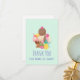 Ett platt tackkort. Illustrerad med teckning av en 3-scoop glass sundae med färgstarka sprinkler. En glasskon med choklad- och vaniljglass. En skål neopolitan glass med körsbär på toppen. Jordgubbar och ananas frukt sitter bredvid skålarna. Summery och söt.