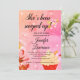 Roligt glass-themed inbjudningskort för möhippan. Blommigt Glass på en rödrosaftig bakgrund. Anpassa det här kortet genom att lägga till din egen duschinformation.
